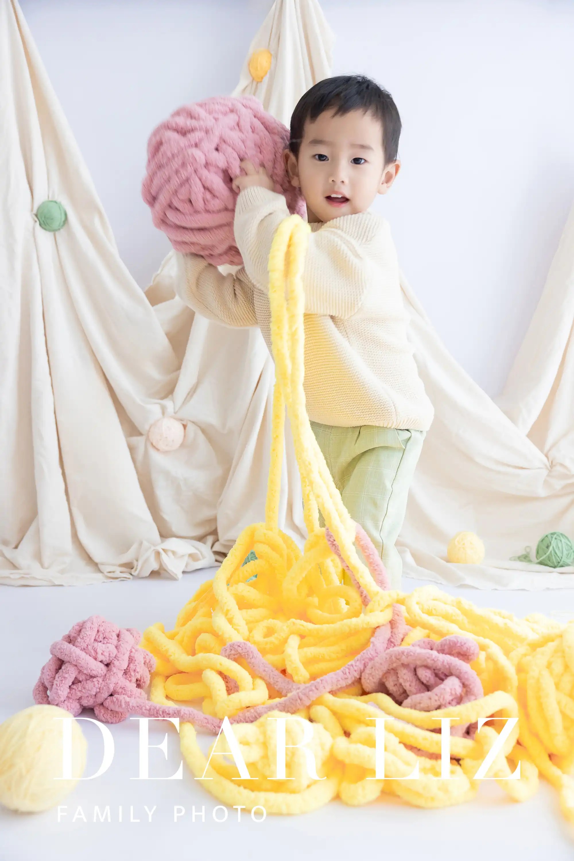 在攝影棚裡,鏡頭寫就一家三口的篇章;